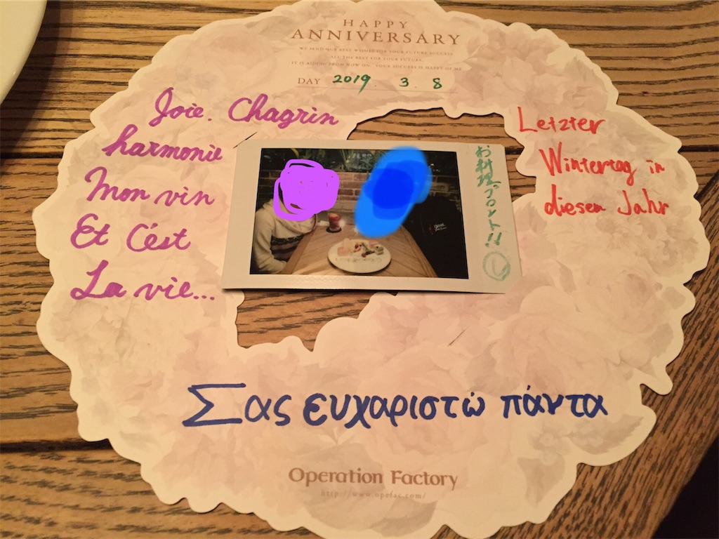 「どうぞメッセージをお書きください」ってカードをくれました。